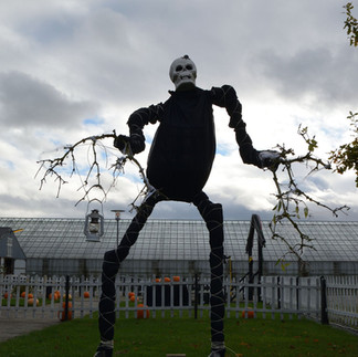 Få en oplevelse med vores tog der køre igennem en flot udsmykket park med Pruttende skeletter, glubske varulve, talende græskar og meget mere. En oplevelse der er lige tilpas uhyggelig hygge for alle.